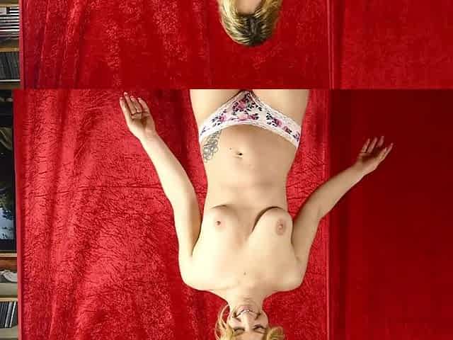 Elegance in motion as blondie takes off her hot pink lingerie and diddles her twat