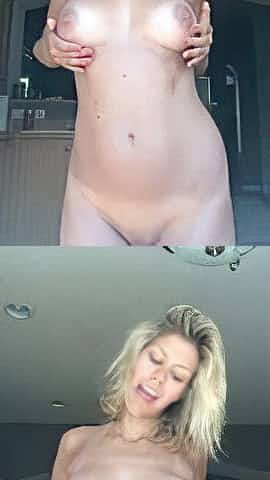 Sexy Blonde Bitch shaking Big Tits and touching Horny Pussy