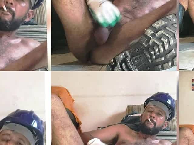 Smoking wearing boots