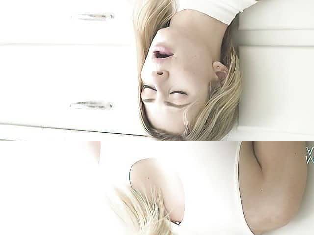 Leggy blonde Tracy Lindsay fingering herself in the kitchen too