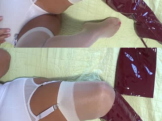 Goddess In Shiny Pantyhose And Leather Boots Drains You On Her Heels