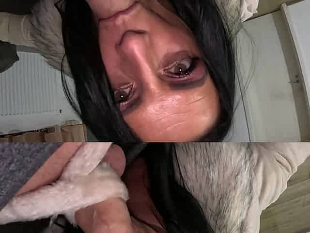 Milfycalla gives an insane deepthroat and enjoys cum play while rocking a hooded jacket and shiny boots