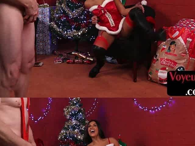 Xmas voyeur angel teasing fortunate lad