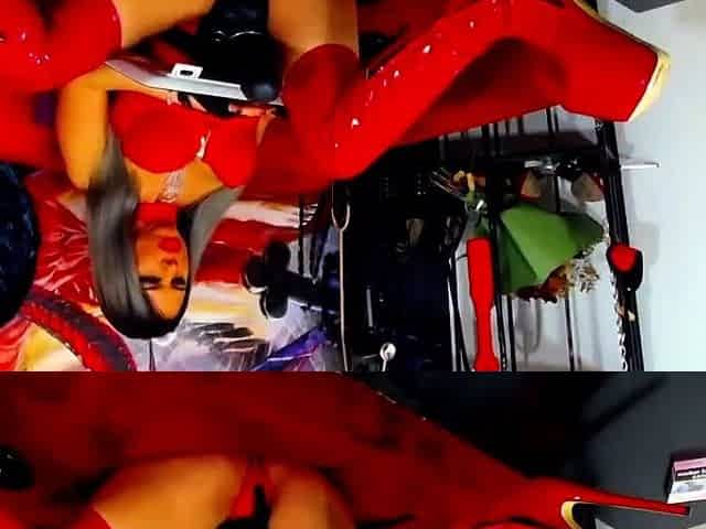 Stripping in Red Silk Lingerie and Ankle Boots