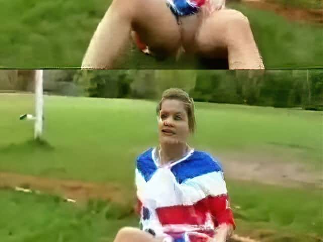 Lovely Bottomless Brunette Plays Soccer Outdoors