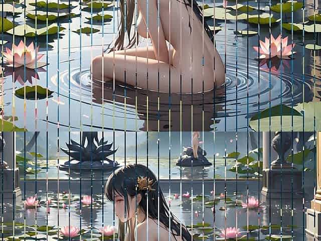 Nude Hentai Girl Having Fun with Boy & Girl in a Water Pool