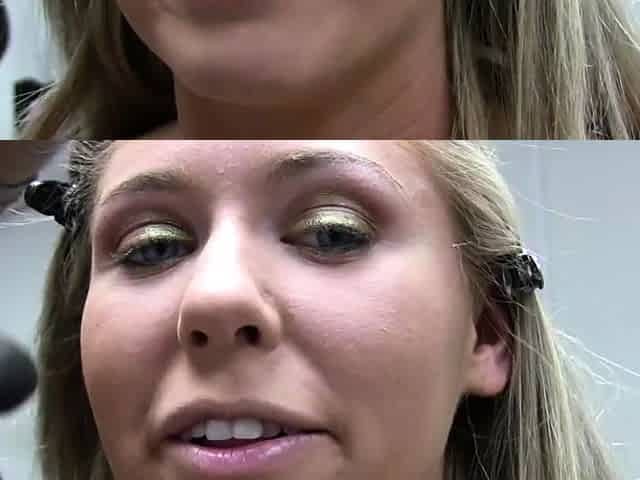 A brunette beauty gets a facial with her co-actors in a threesome.