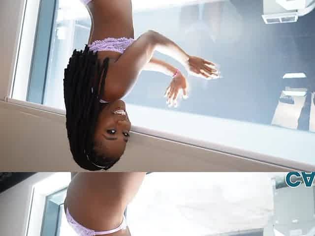 Ebony erotic model Asia Rae gives a blowjob and rides a white dick
