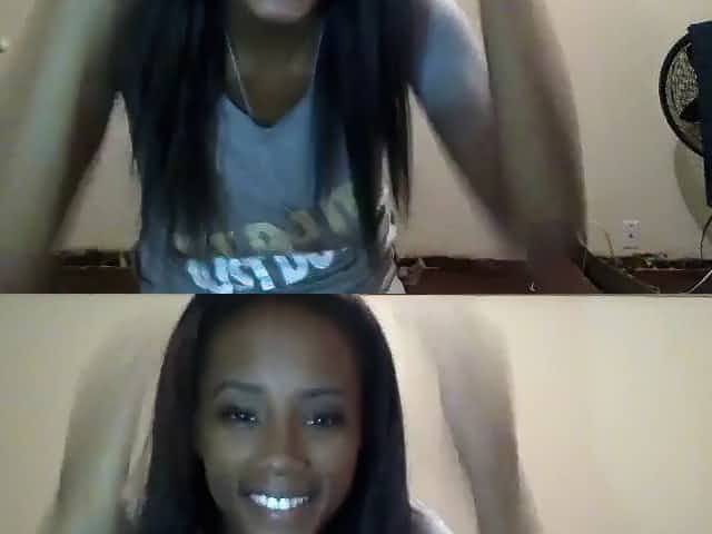 Pretty smiling black lewd lady gets rid of bra and panties to show her big ass