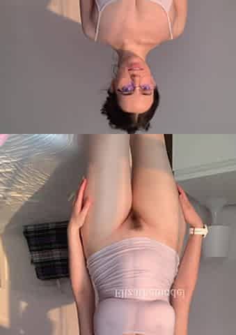 eighteen yo angel working in white nylons pearl belts pink mini petticoat and braless for additional money.MP4