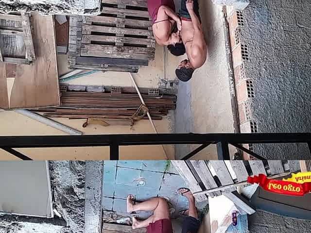 Wearing Micro Bikini On Balcony For A Worker See