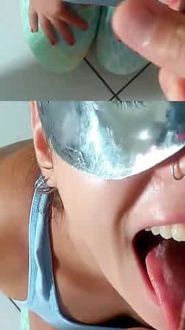 Novinha brasileira amadora dando blowjob e engolindo porra