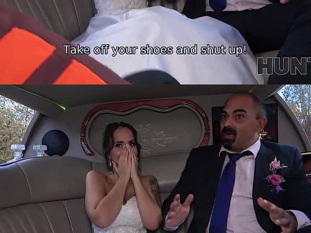 HUNT4K. Random passerby scores luxurious bride in the wedding limo