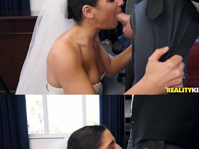 Horny bride gives a blowjob and gets her pussy torn up