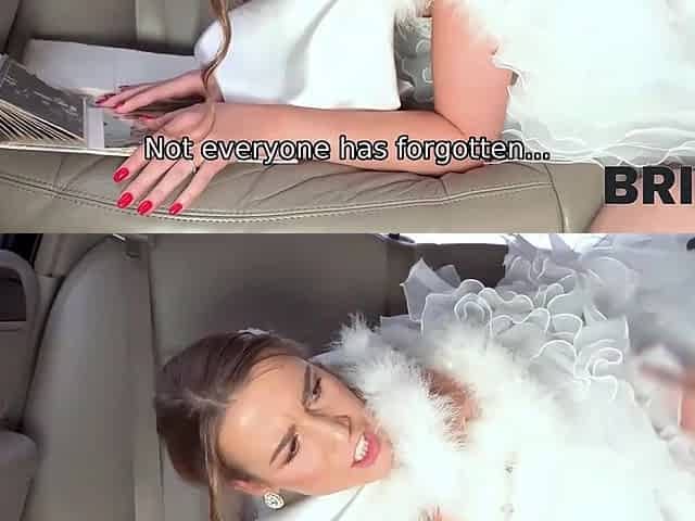 Naughty bride Alexis Crystal gets fucked in the back seat of a luxury limo