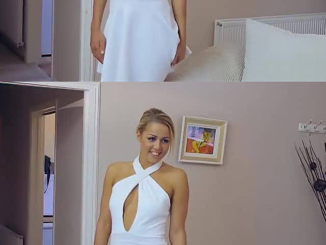 Horny blonde bride getting her pussy banged