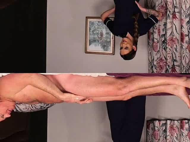Step mamma out of bikini hits step son ramrod with foot