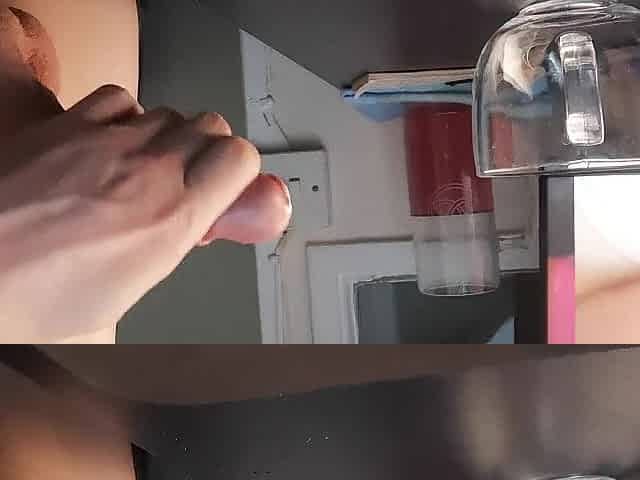 Wanking a load into a glass mug