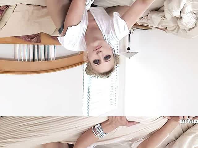 Naughty blonde cougar dances and shows her lovely sexy lingerie