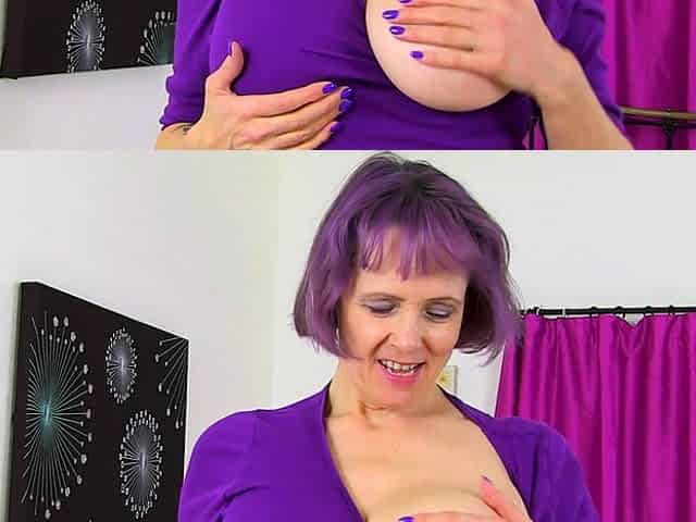 A big-titted granny from the UK fucks herself