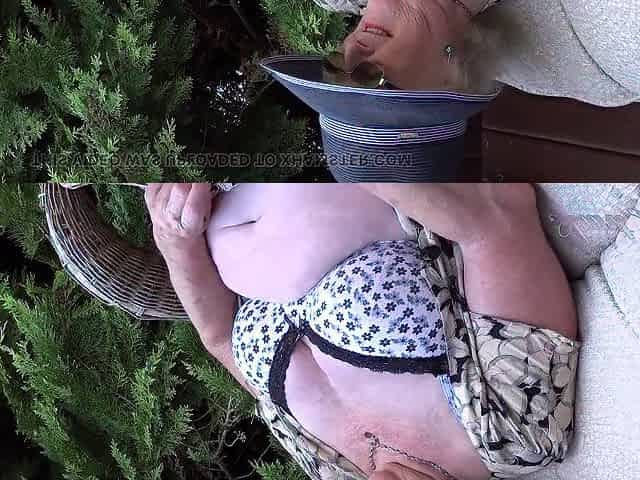 AuntJudys - 66 year old hairy mature GILF Ms. Claire sucks your cock in the garden POV