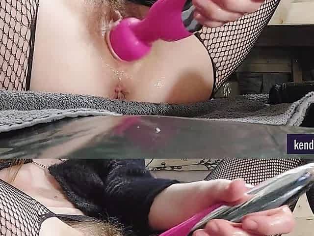 Vibrator orgasm, hairy pussy