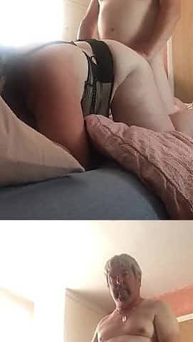 Lingerie voyeur encourages sub to tug