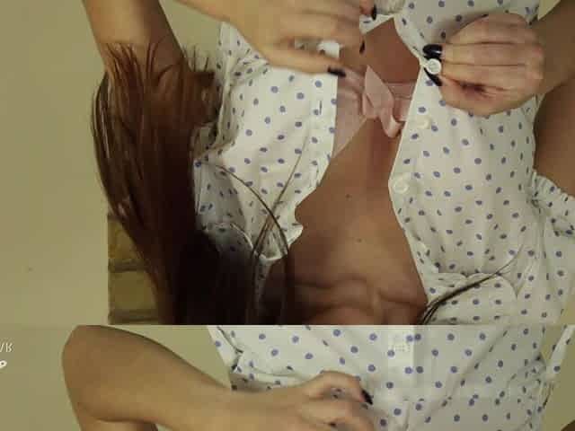 Slim brunette teases and strips