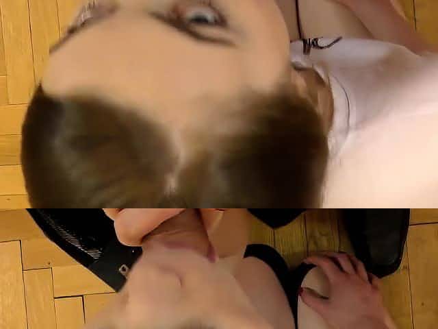 Brunette licking this cock copiously