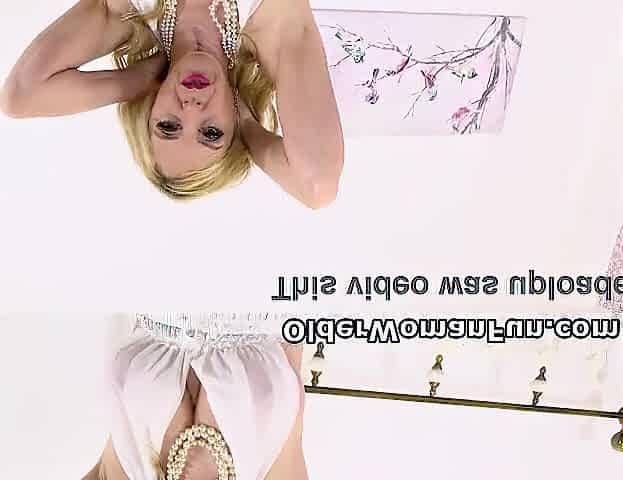 Blonde Mature Lucy Gresty Lowers Her Thong and Spreads Her Pink Fanny