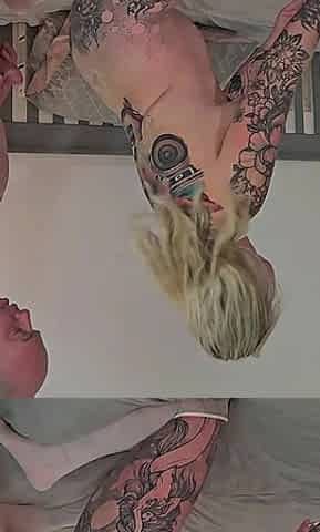2 blond British beauties scissoring, licking out & fingering on kitchen table JOI