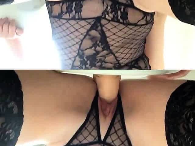 Watch sweet Lucie B in fishnet stockings while having solo fun