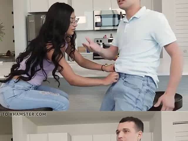 Hot sister helps step brother, kitchen fuck