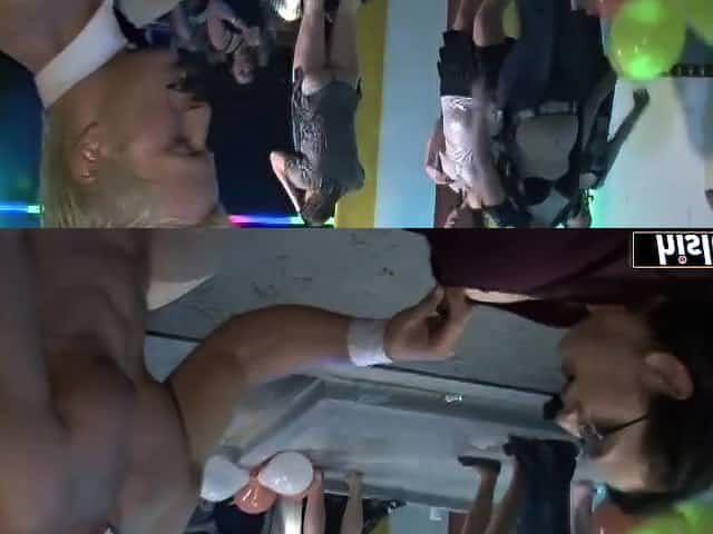 Girls getting covered in cum at a party