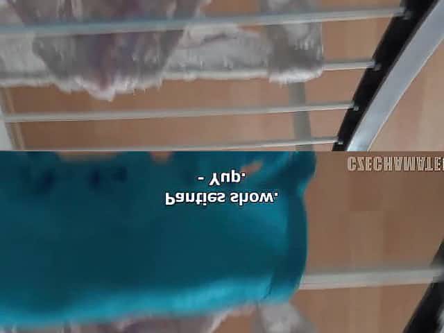 Half-naked couple gets missionary orgasm on the floor