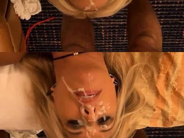 Enjoyable blonde slut gets her pretty face splattered with cum