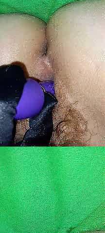 Sex-toy in Bushy Twat with vaseline