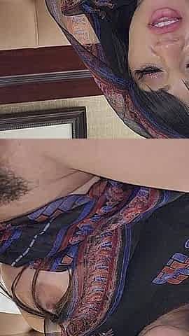 HJ Arab amateur babe with hairypussy jerks cock in POV
