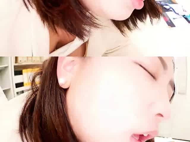 Wild busty office babe gives mind blowing Japanese blowjob session