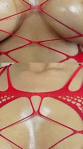 Nipple Play in Red Bodystocking