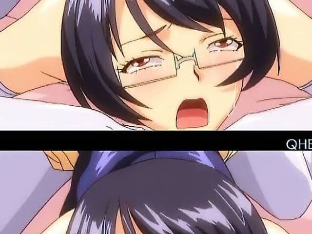 Hentai busty girl in glasses pussy screwed to intense orgasm