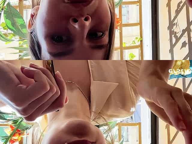 Solo blonde babe Katerine Moss plays with her trimmed vulva in VR for an intense pleasure session