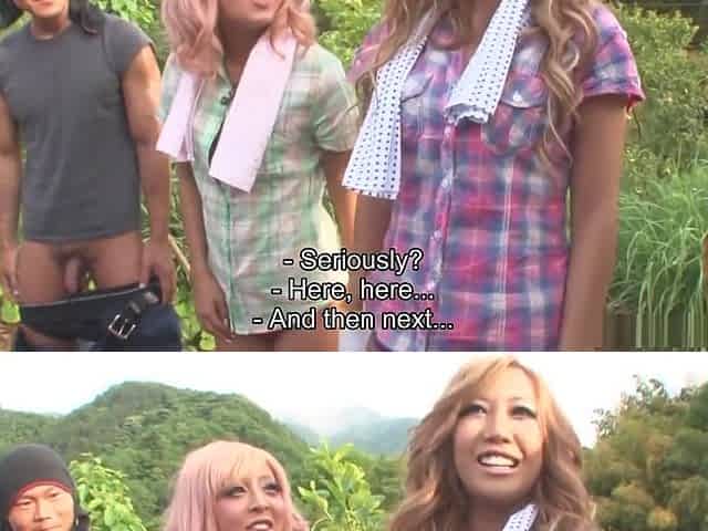 Lovely Japanese girls serve several insatiable dudes and show their creampied pussies