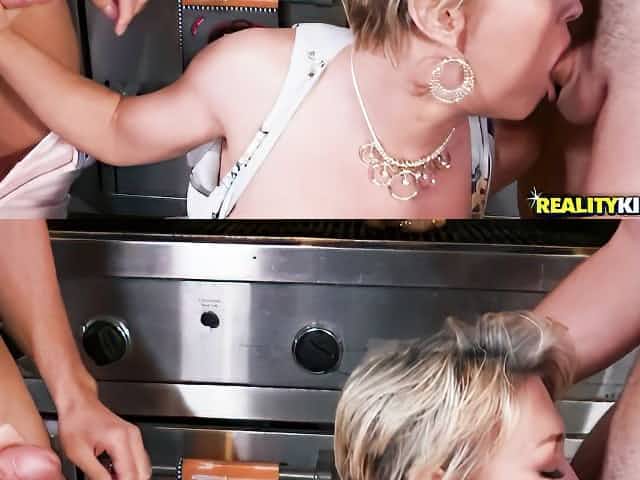 Smoking hot Marilyn Crystal sucking two big cocks at the same time
