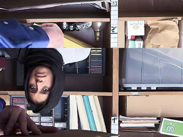 STUCK4K. Redhead is stuck cuz of large breasts and has unexpected sex
