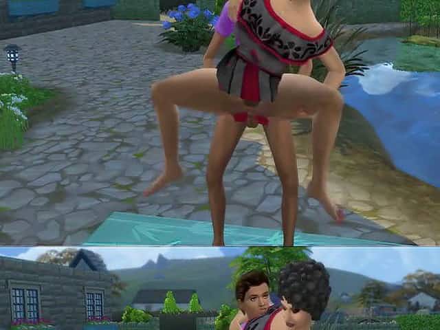 Teen doing workout outdoor on yoga instructors big dick