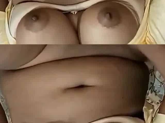 Small titted brunette teen fingering on the bed