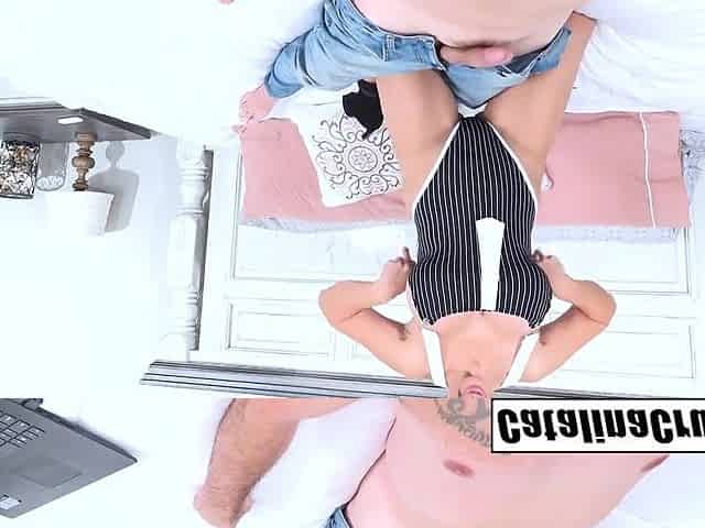 Sofi Adams and her boyfriend try out cowgirl position.