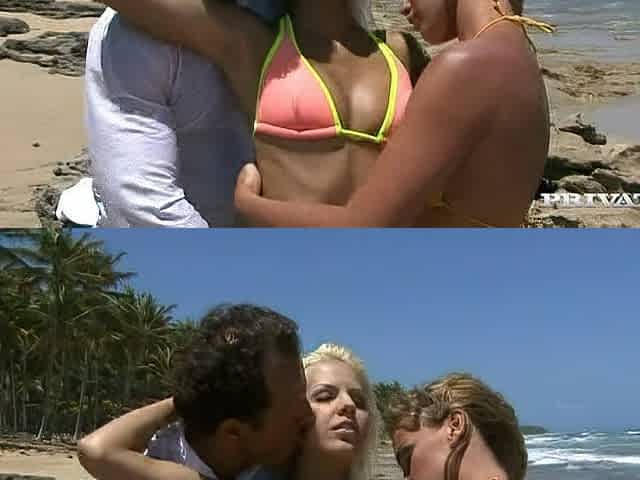 Brunette lesbian beauties making out in threesome