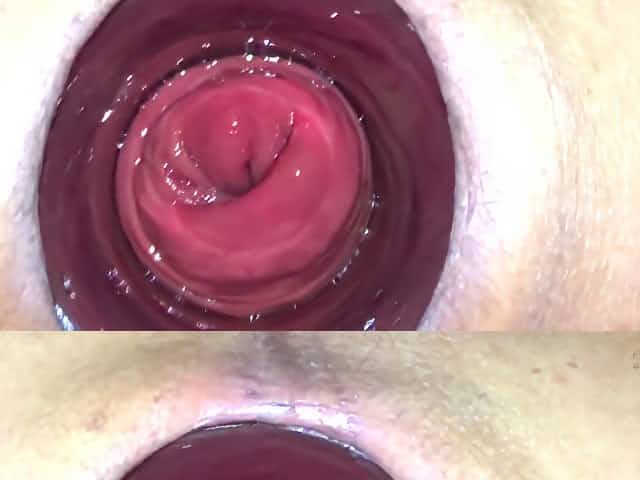 Extreme pussy stretching with thick plastic sylinder